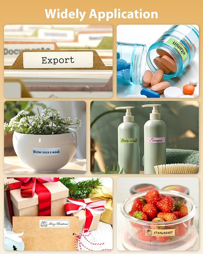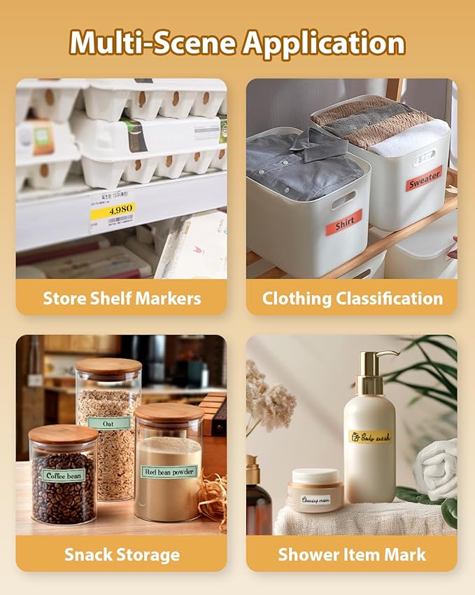 - Ideal for Home Organization: This label maker machine is perfect for home, office, and school use. It aids in kitchen organization, spice labeling, food date marking, and categorizing clothes and cosmetics. It also helps label jars, manage office files, identify cables, and label personal items. For small businesses, it creates price and jewelry tags. In schools, it's useful for name tags and study notes. This label printer enhances organization and brings fun and convenience to your daily life