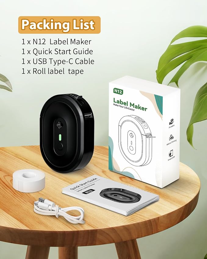 - 2025 New Model: Compared with traditional label makers, the N12 label maker is only half the weight and size of conventional models. It is more compact, smarter, and easier to carry around. You can easily slip it into your pocket and print anytime, anywhere. With its 203 DPI high-resolution printing, it delivers clear and sharp print quality. The printer is simple to use and offers fast, smooth printing