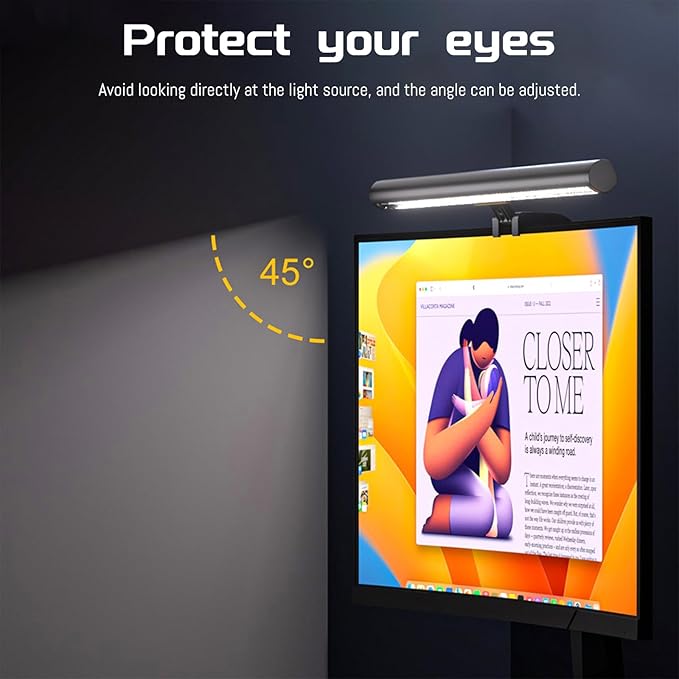 - 3 Color Temperatures & Adjustable Brightness: ScreenLinear computer monitor light can be adjusted to three levels of brightness and color temperature (3000K-4000K-6500K) to customize preferred lighting to feel most comfortable to your eyes. A warm and cozy light for relaxing, bright and cool light for focused work. The color rendering index reaches up to Ra95*, enhancing vibrant and true-to-life colors, and making objects on your screen appear vivid and realistic