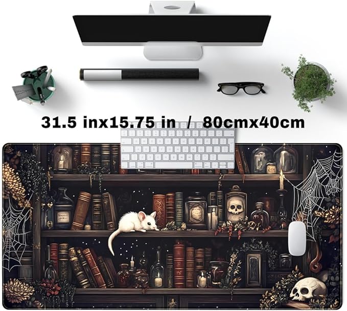 Dark Witchy Desk Mat Gaming Desk Pad Large Mouse Pad, Magician'S Fantasy Bookcase Gothic Mouse Mat XXL Laptop Keyboard Pad, Laptop Keyboard and Mouse Mat Desktop Protector Mat 31.5 X 15.7 in