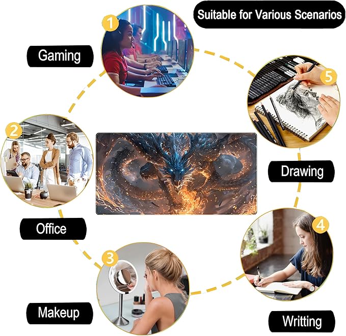 - Durable and Easy to Clean: When computer gaming Desk Pad gets dirty or liquid splashes on the coating surface, just need to wipe it with a piece of wet cloth, and job done. Fun and Unique Design Personalized design mouse pad brings a whole new experience to your office life gaming