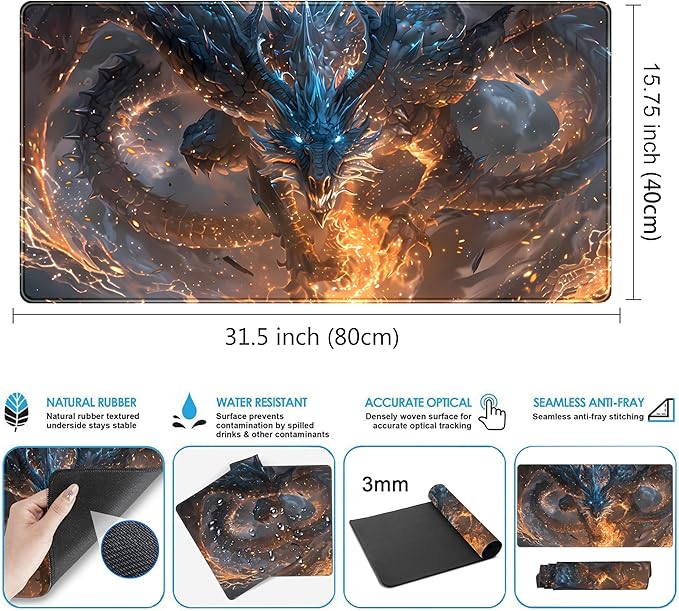 - Mouse Pad Extended Size: 31.5x15.7 inches. / 80x40 cm. Thickness: 3mm. Packaging includes: 1 * mouse pad. What you buy is not only a product, but also a sense of happiness and satisfaction from the desktop and the mouse