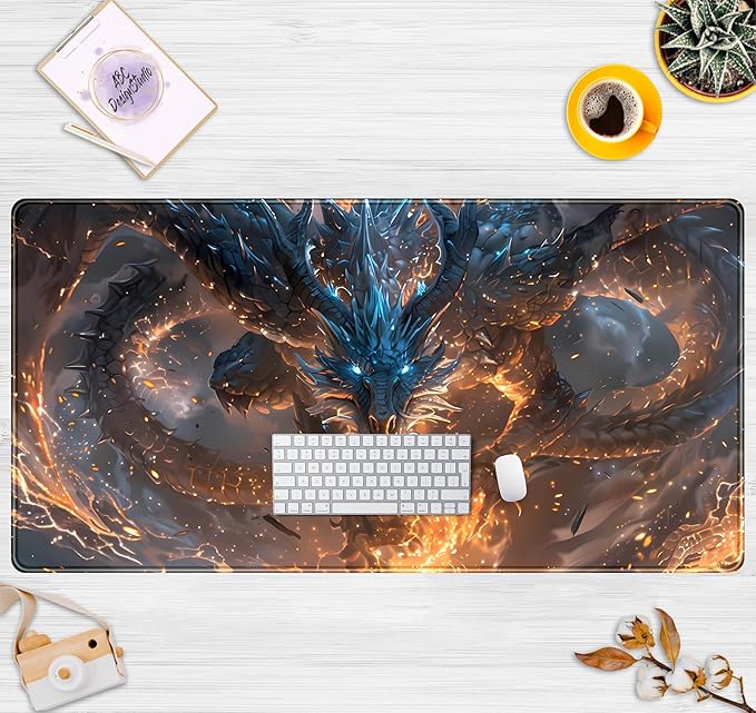 Cute Anime Dragon Desk Mat Kawaii Mouse Pad Gaming XXL Large Extended Desk Matt for Desktop with Stitched Edges, Laptop Computer Keyboard Mouse Mat for Women Office Decor Accessories 31.5''x15.7''