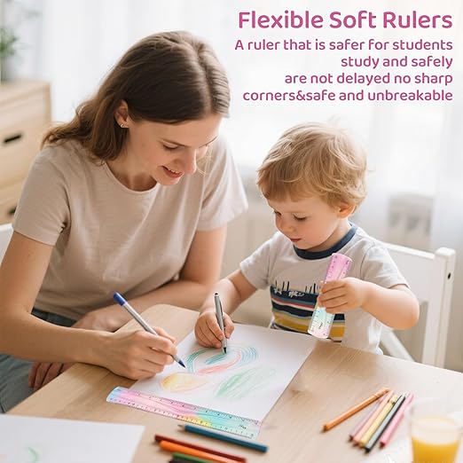 - 6inch and 12inch Rulers with Double Sided inch/cm Scale: The rulers set includes 6inch and 12inch length.The flexible ruler is labeled with inch and centimeter scales on both sides, clear and easy to read, soft and durable, won't leave traces after folding, suitable for precise drawing and measuring, in addition to measuring a straight line, you can also bend the ruler to measure the circumference or curves, very practical