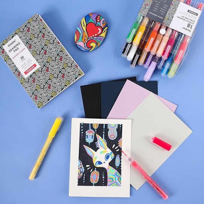 Grabie Acrylic Paint Pens Markers, 18 Colors, 0.7 mm, Extra Fine Tip Drawing Markers, Premium Paint Pens for Painting on Various Surface, Art Supplies