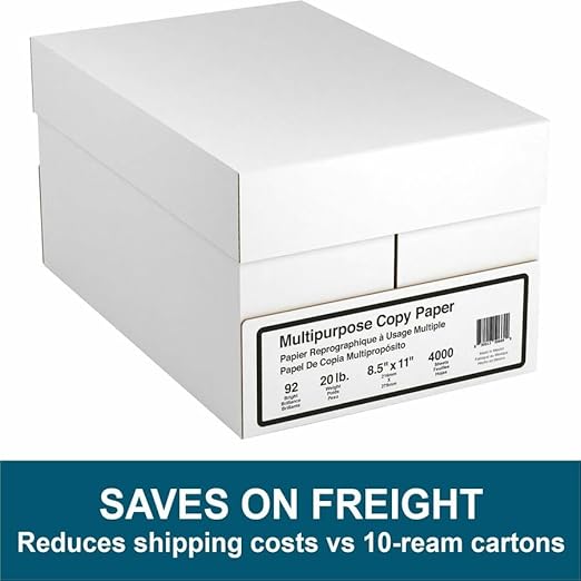 Multipurpose Copy Paper, 8.5" x 11", 500 Sheets/Ream, 8 Reams (4000 Sheets Total)
