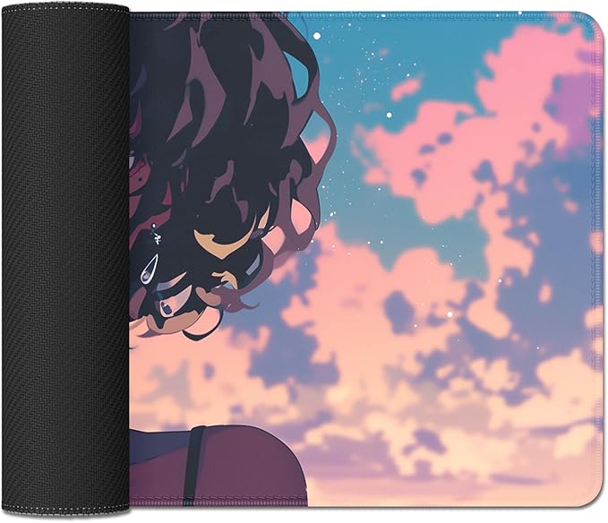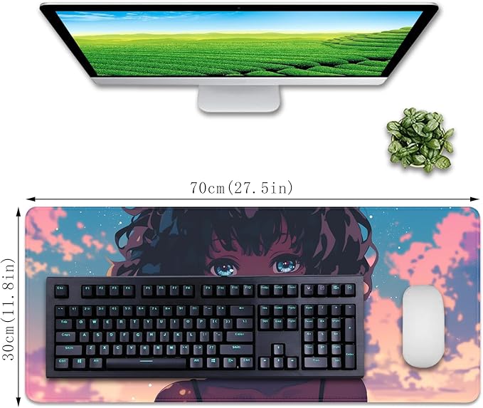 Anime Black Girl Extended Mouse Pad Desk Mats on Top of Desks Gaming Pad Large Mousepad with Stitched Edge Non-Slip Rubber Base for Computer Keyboard Laptop PC (27.5X11.8 in)