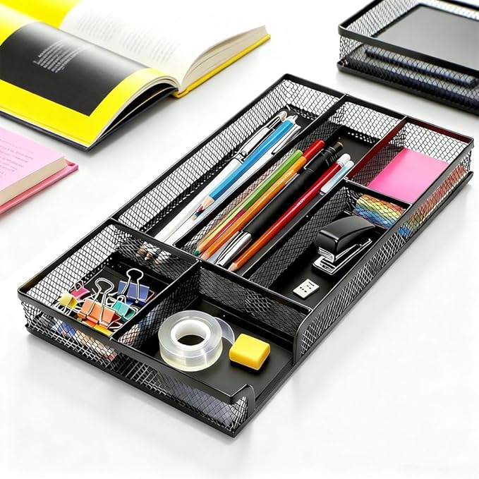 - 【 Clutter-Free Solution】Design with 6 compartment for pens, pencils, highlighters, erasers, staplers, clips, scissors and other desktop essentials. Everything stays neatly in place.
