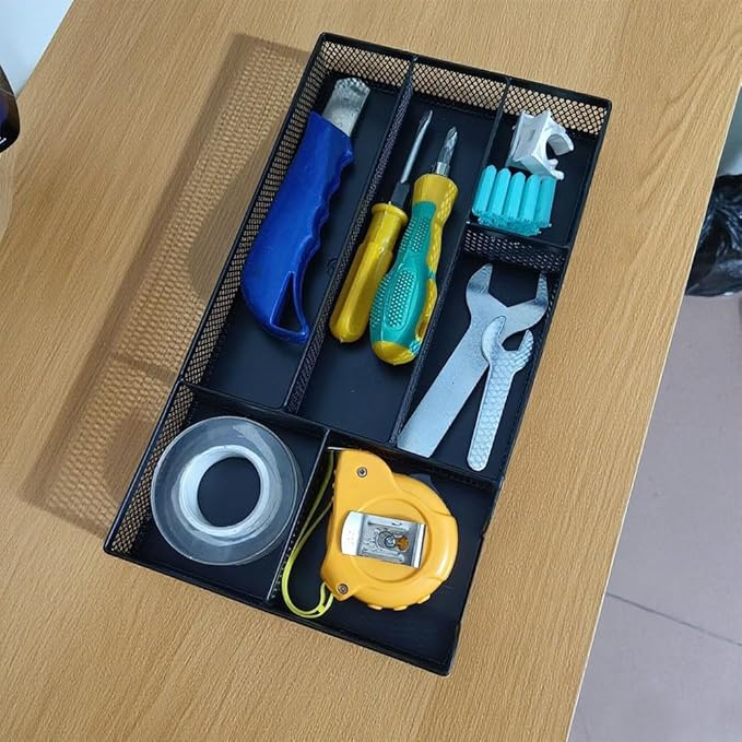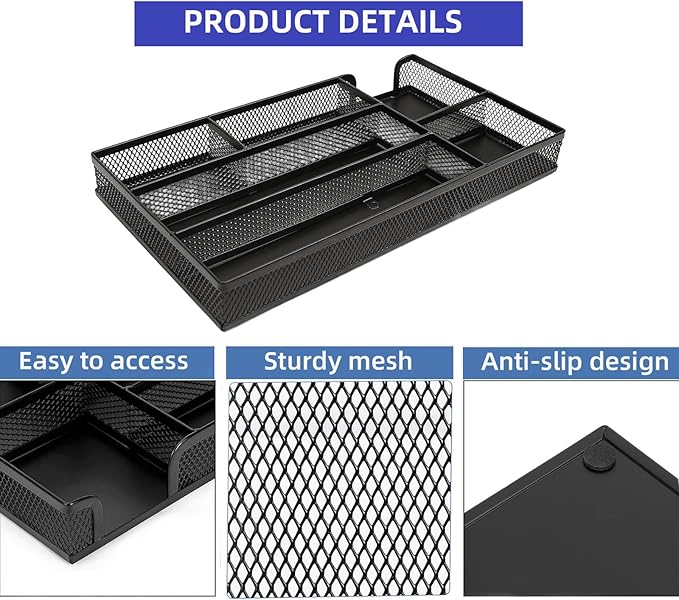 - 【Durable and sturdy】Crafted from high-quality metal with a rust-resistant finish, this office drawer organizer is built to last. The bottom is all equipped with anti-slip pads, which can keep them stable and protect desk surfaces from scratches.