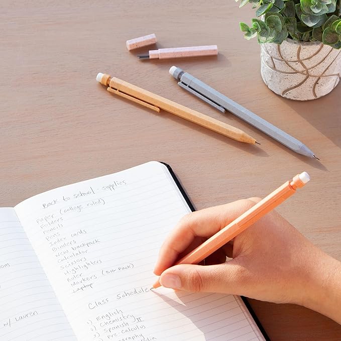 - SOPHISTICATED DESIGN: Constructed from plant-based materials, this colored 0.7 mechanical pencils pack features vibrant hues of Ocean, Orchid, Apricot, Fog, Sky, Lemon, making them a great addition to school supplies