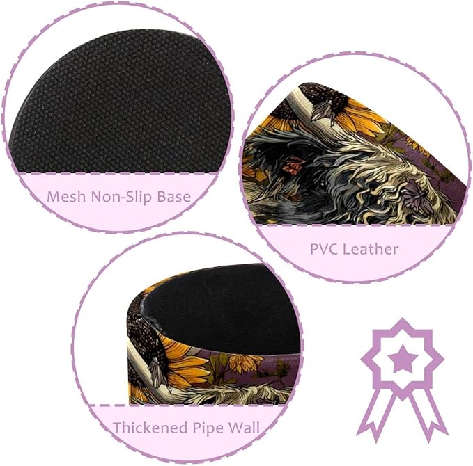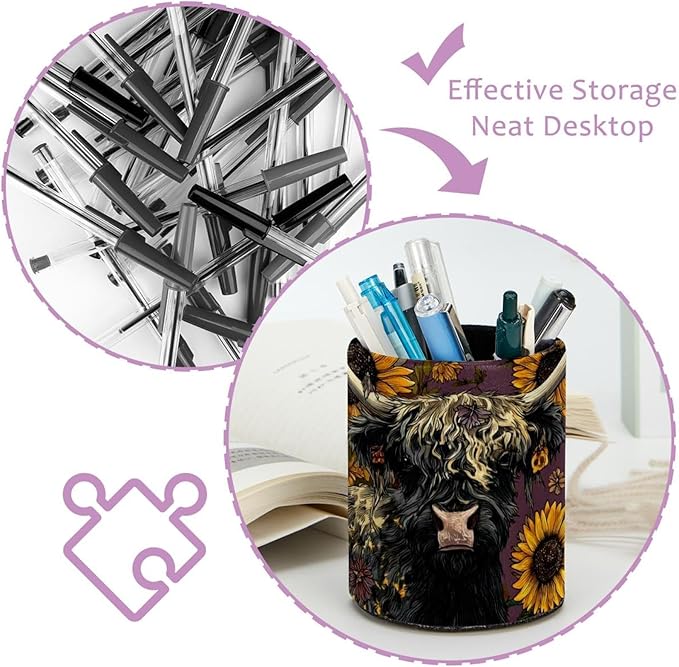 1 Pack Watercolor Sunflower Yak Circular Pen & Pencil Holder - Durable PU Leather Pencil Cup, Desk Accessories Organizer for Office Desk School Home