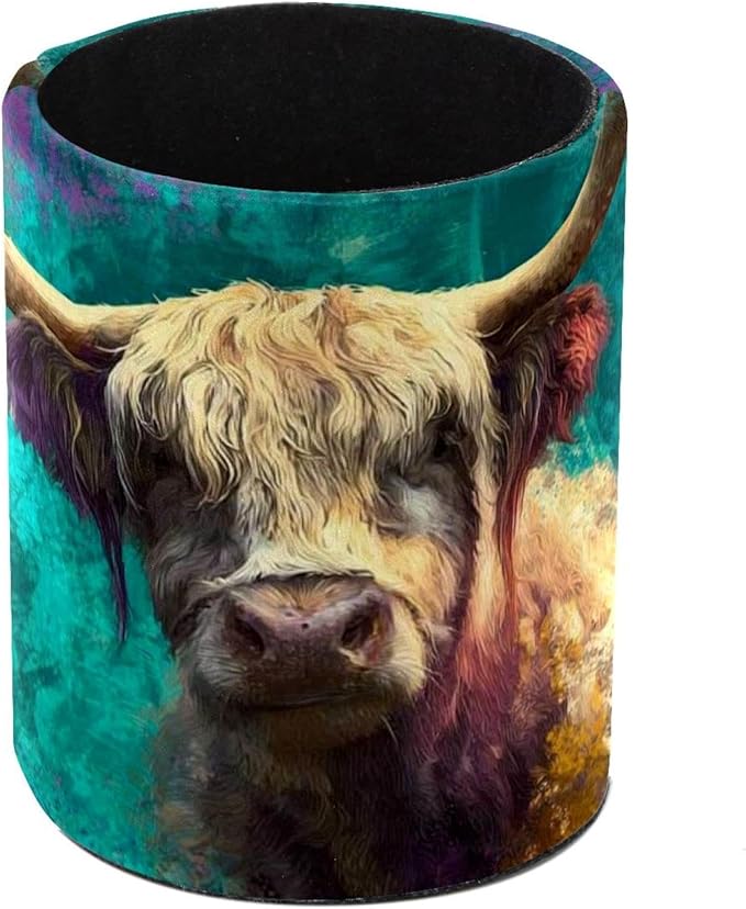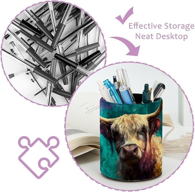 1 Pack Watercolor Art Yak Circular Pen & Pencil Holder - Durable PU Leather Pencil Cup, Desk Accessories Organizer for Office Desk School Home