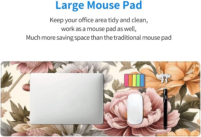 Gaming Mouse Pad, Large Non-Slip Rubber Base Mousepad, Keyboard Mouse Mat, Desk Pad with Stitched Edges, 31.5x11.8inch, Bloom