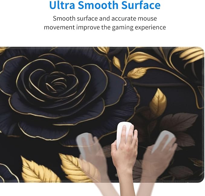 Gaming Mouse Pad, Large Non-Slip Rubber Base Mousepad, Keyboard Mouse Mat, Desk Pad with Stitched Edges, 31.5x11.8inch, Black Flower