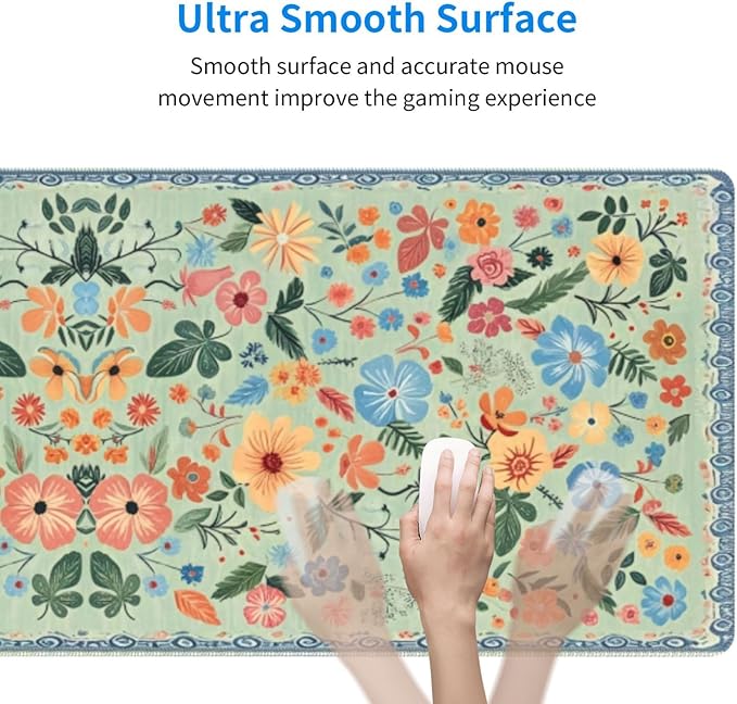 Gaming Mouse Pad, Large Non-Slip Rubber Base Mousepad, Keyboard Mouse Mat, Desk Pad with Stitched Edges, 31.5x11.8inch, Wilde Flower