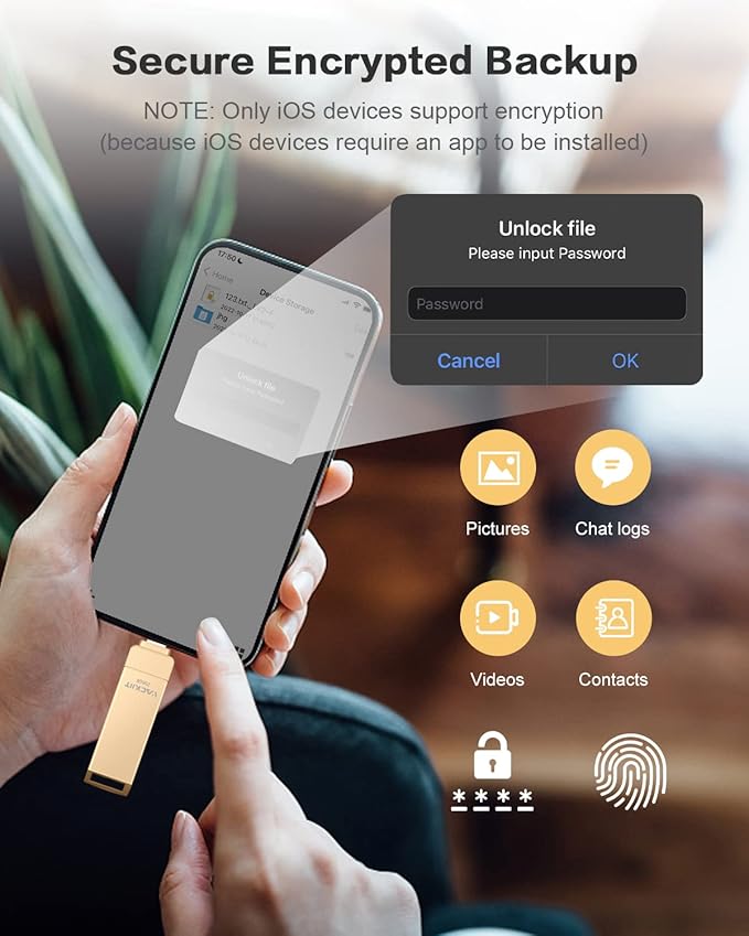 - 【Expanding Capacity for Your Phone】This is an MFi-certified photo stick for excess photo and video storage to help you free up your phone memory.