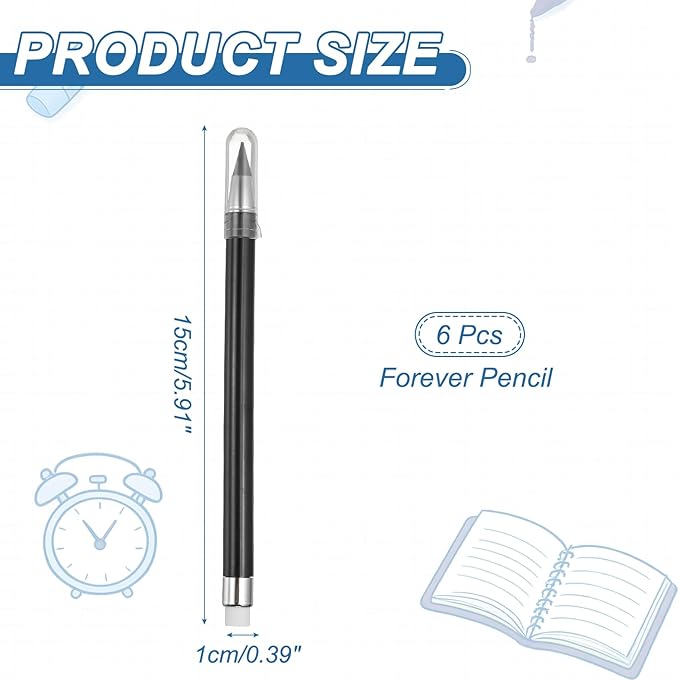 - Color: Fruit Green; Material: Plastic, Metal; Size: 14x1.3cm / 5.5x0.5inch; Package Includes: Forever Pencil x 6, Refill x 6