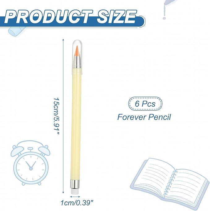- Color: Fruit Green; Material: Plastic, Metal; Size: 14x1.3cm / 5.5x0.5inch; Package Includes: Forever Pencil x 6, Refill x 6