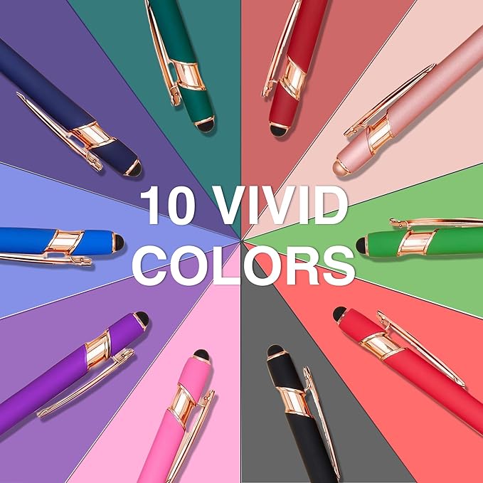 - 2-in-1 Stylus Pens:This black ink pens combines smooth writing and convenient touch control in one.the press-type ballpoint pen design with a bullet shaped tip ensures fluent ink flow no skipping,no ink jams,and even delicate lines for notes,documents or study records.the hemispherical rubber tip is soft and gentle—no scratches on screens.it works seamlessly with phones,tablets and all touchscreen devices,making it ideal for office meetings,online learning and on-the-go use